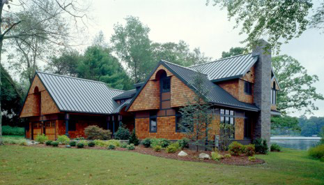 Lake Terramunggus in Marlborough. The proposed house commands a full view of the water and provides 3100 square feet f living space. The interior is organized to afford water views from every room, while the Great Room features a dynamic window wall that follows the curve of the Lake.